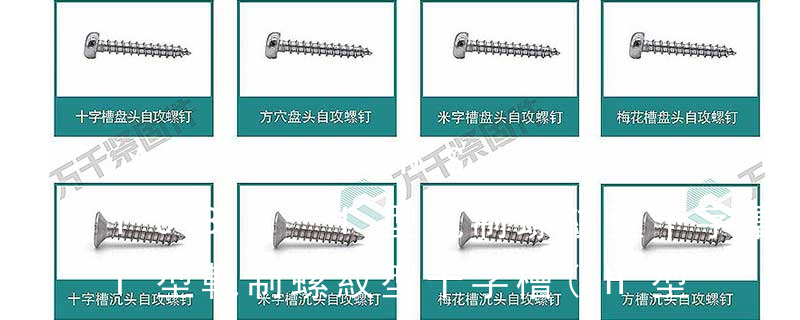 1、Flat:平頭 (鎖入后,頂部與工作件齊平)2、Oval:色拉頭、O頭、半沉頭 3、Round:圓頭 4、Pan:圓扁頭 5、Truss:大圓扁頭 6、Hex:六角頭 A-5:Finish Code/外觀處理。公制自攻螺絲 :于品名后方直接標示 Tapp 六角花形等;內扳擰:一字槽、十字槽H型、十字槽Z型、十字槽F型、四方槽、復合槽、內花鍵、內六角花形、內三角、內六角、內12角、離合器槽、六葉片型槽、高扭矩十字槽等。3、螺紋種類螺紋種類繁多,有自攻螺紋(