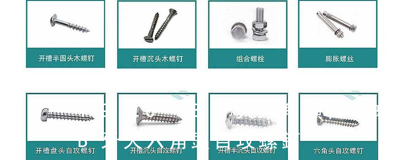 大六角螺栓,顧名思義為頭部為六角型的外螺紋扣件,設計為使用扳手轉動。 依照ASME B18.2.1標準,六角頭螺釘(Hex cap screw)較一般的大六角螺栓(Hex bolt)的頭高和桿長公差小,因此ASME B18.2.1六角螺釘適合安裝在所有 自切自攻螺釘有以下幾種型式:十字槽盤頭自切自攻螺釘,十字槽沉頭自切自攻螺釘。十字槽半沉頭自切自攻螺釘,六角頭自切自攻螺釘。3、自擠自攻螺釘(自攻鎖緊螺釘)自擠自攻螺釘的螺紋一般為機螺紋,很少采用自攻螺紋。在扳擰